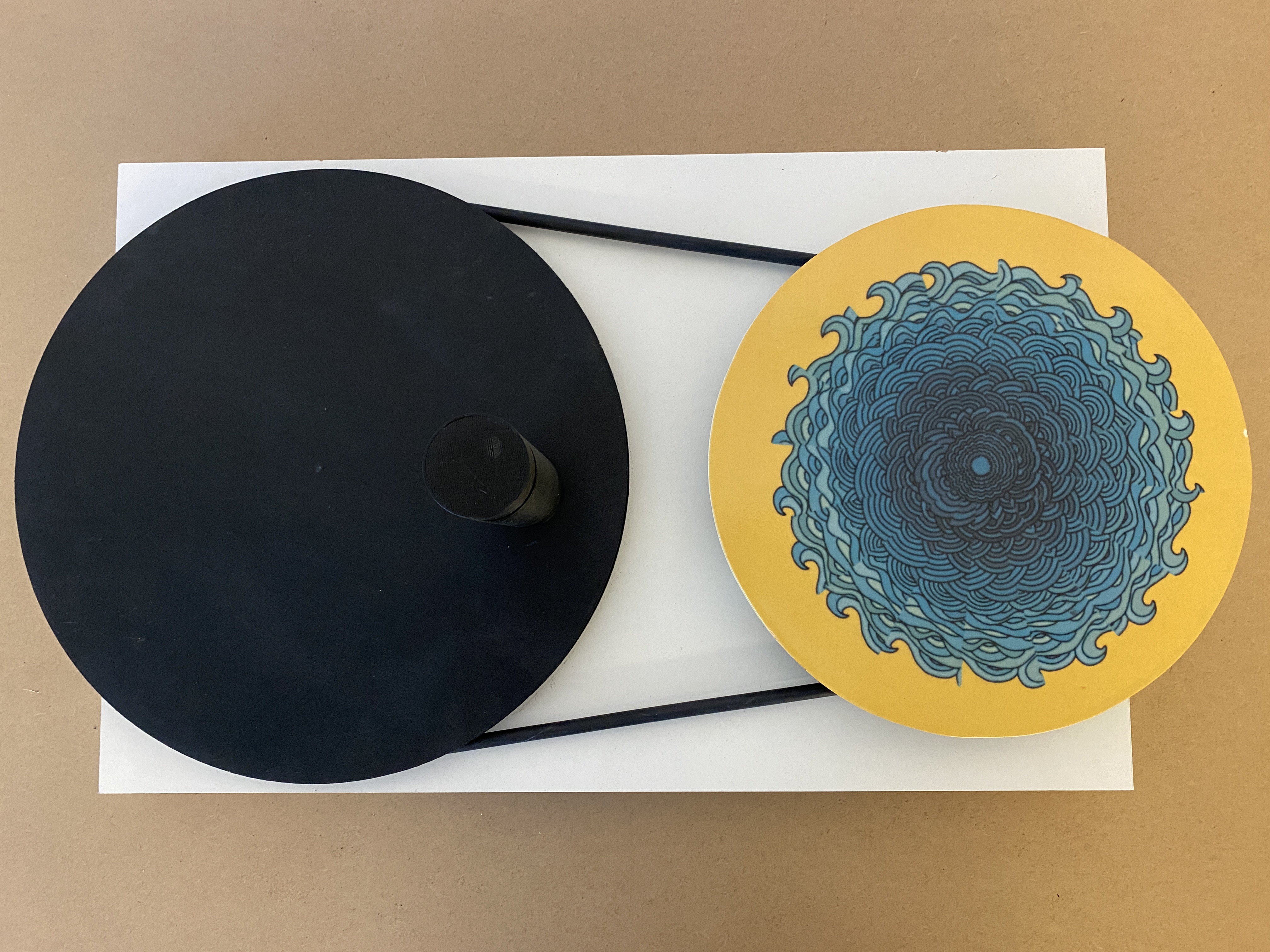 Eu fiz um protótipo do meu prato, em cartão e autocolante, para a apresentação ao professor. Agora que tenho o prato finalizado, experimentei ambos o prato de cartão e o prato cerâmico e apercebi-me de que mesmo a olho nu se notava uma maior clareza no movimento da peça cerâmica.